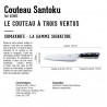 Découvrez notre couteau Santoku, le couteau à tout faire par excellence. Avec sa lame de 7" en acier Damas et son manche en composite noir, il offre une combinaison parfaite d'esthétisme et de performance. Sa polyvalence se manifeste à travers ses trois vertus essentielles : trancher, émincer et ciseler. Que vous soyez un chef amateur ou professionnelle, ce couteau santoku sera votre allié dans toutes vos préparations culinaires.