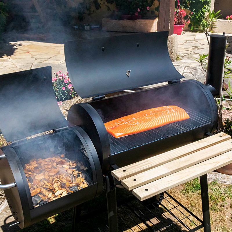 Cuve en acier laqué 60 x 30 cm avec fumoir 30 x 30 cm et cheminée