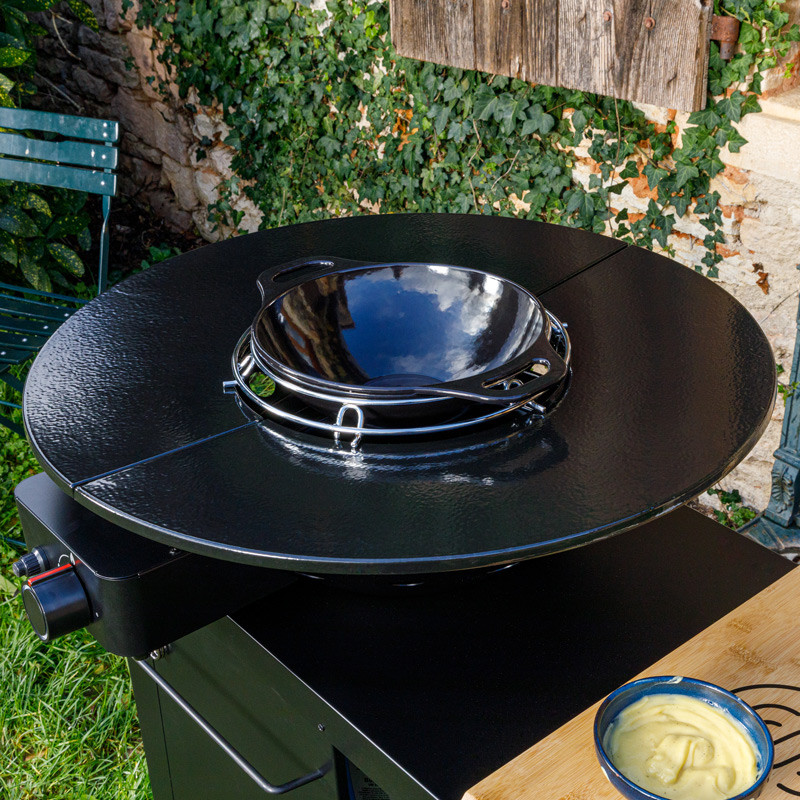 Cuve ronde diamètre 70 cm avec 2 demi-plaques de cuisson en fonte émaillée diamètre 72cm, won amovible en fonte émaillée