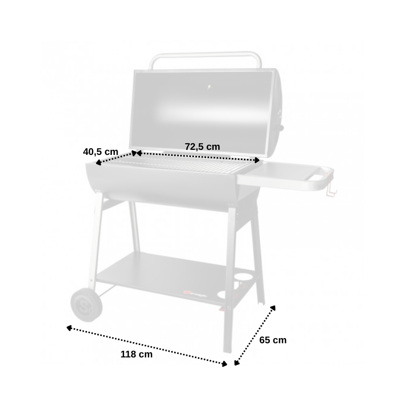 Barbecue à charbon de bois en acier, grille en acier chromé, couvercle de cuisson en acier laqué, sur chariot.