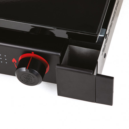 Surface anti-adhérente pour une cuisson saine sans ajout excessif de matière grasse et des rebords incurvés pour garder les jus et les aliments bien en place.
