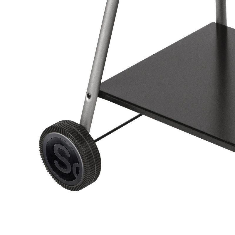 Chariot stable et robuste avec tablette latérale en bois, plateforme de rangement et crochets porte-accessoires