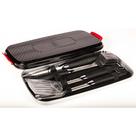 Valisette de 4 accessoires en acier inoxydable pour cuisson au barbecue.
