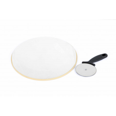 Set d'accessoires conçu pour couper votre pizza est composé d'une pierre, d'une plaque en aluminium et d'une roulette.