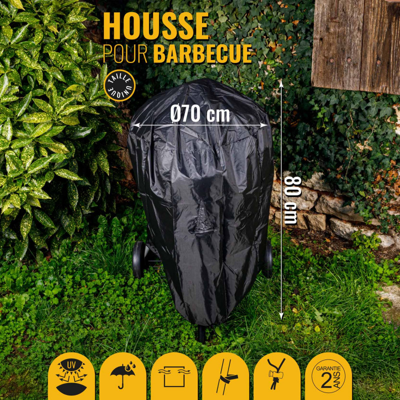 Grille de cuisson en acier chromé diamètre 55 cm et couvercle de cuisson en acier émaillé avec système d’aération, cendrier et thermomètre