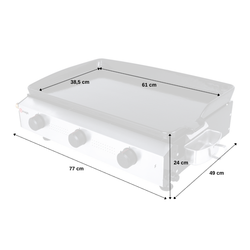 Plancha à gaz à poser en acier laqué, plaque de cuisson en fonte émaillée.